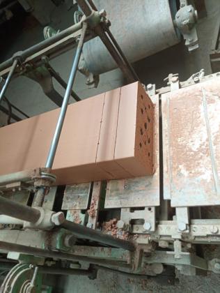 ![]() argile broyée sur tapis après passage dans le premier broyeur ![]() argile aditionnée d'eau dans le mélangeur ![]() malaxeur ![]() Mouleuse et filière pour brique perforée ![]() argile en sortie de mouleuse, format de carreaux de 16 ![]() Filière de drain qui se pose en sortie de mouleuse pour obtenir la forme souhaitée ![]() Filière de briques de 11x22, la dernière dimension sera coupée par le chariot coupeur ![]() briques coupées en 5 cm de haut avec le chariot coupeur Après la fabrication pour obtenir un produit fini : Les carreaux, briques, tuiles fabriqués sont ensuite déposés à la main sur des étagères pour l'étape de séchage.